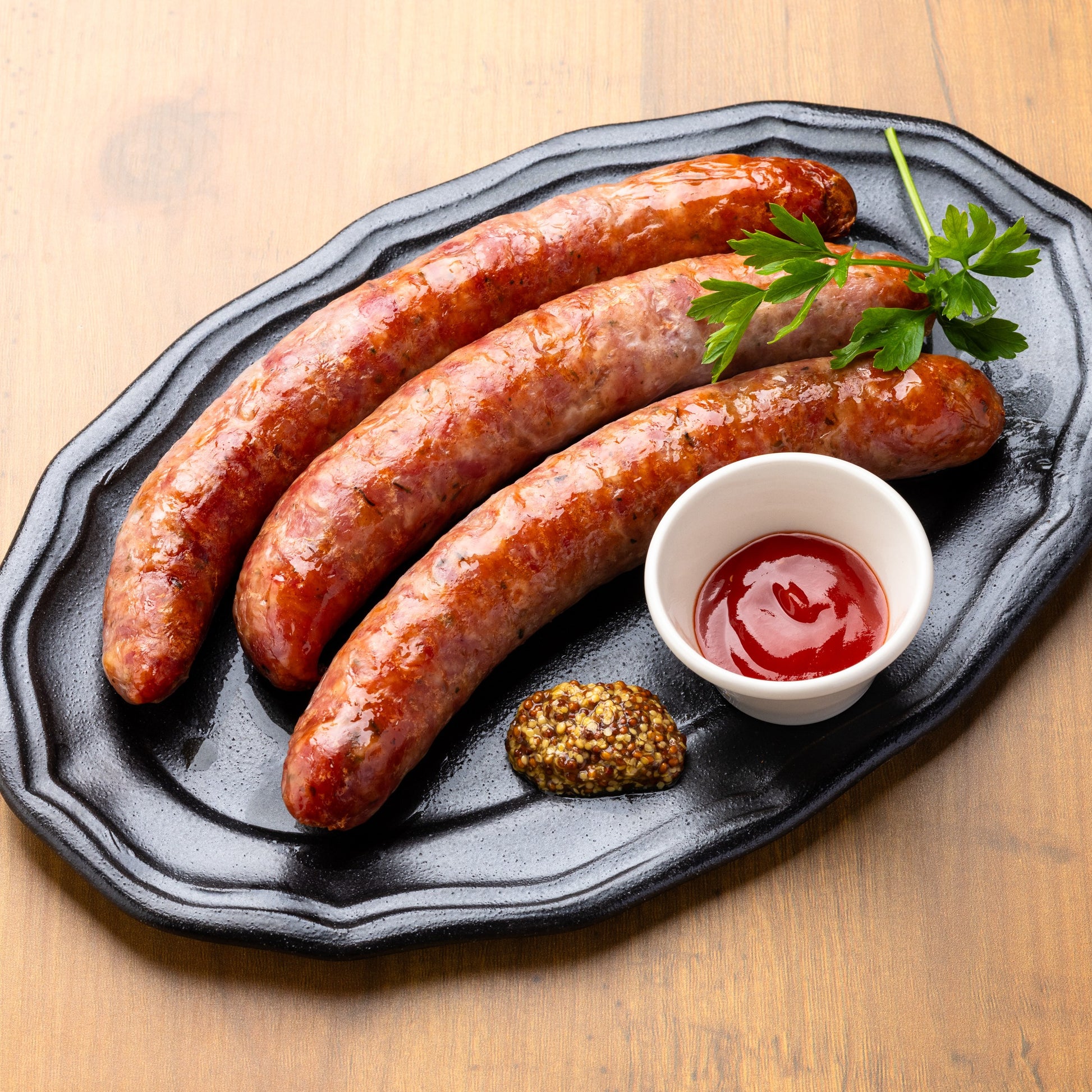 食べ応え抜群のオリジナル商品。手作りならではのジューシーさと、噛むごとに広がる風味がたまりません。焼きたてのソーセージは、外はパリッと、中はふっくらジューシー。